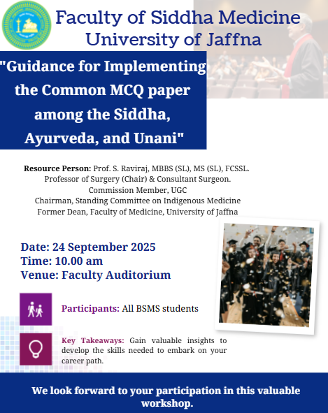 The celebration was graced by several distinguished guests, including the Honorable Mayor of Jaffna, Chief Secretary of the Northern Province, Consulate General of India, Vice Chancellor of the University of Jaffna, Director of Jaffna Teaching Hospital, Dean of the Faculty of Siddha Medicine, and other esteemed dignitaries, whose presence added great significance to the occasion.