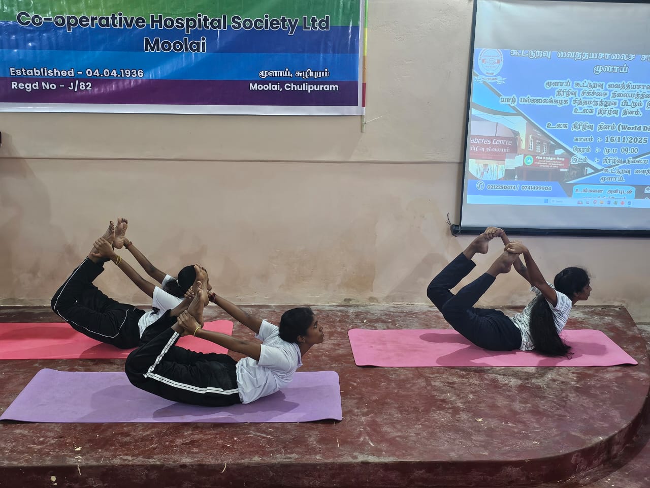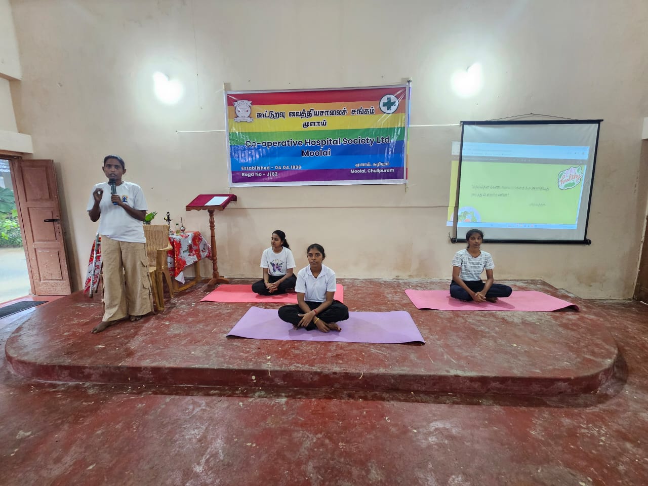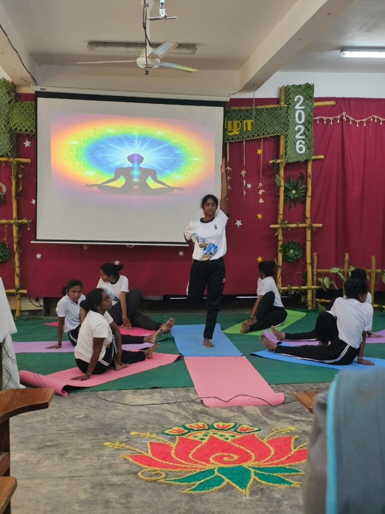 The Department of Moolathaththuvam, Faculty of Siddha Medicine, along with 20 Phase I BSMS students, actively participated in the event. The students enthusiastically engaged in the practice of Surya Namaskar, various specific yoga asanas, and breathing exercises, demonstrating their dedication to the principles of holistic health and well-being. Miss.A.Anushiyaa, Miss.J.Kavipriya and Dr. (Mrs.) S.Ajanthini assisted the students to do the yoga asanas and pranayama techniques promptly.