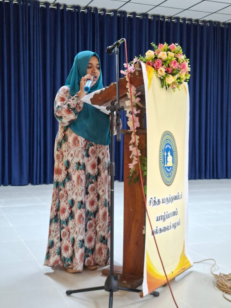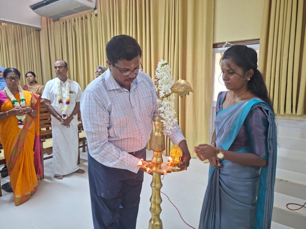 Then Students presented the Akasthiyar Vanakam, and all distinguished guests joined in the lighting the traditional oil lamp. Mr. Sarveswara Iyer Padmanaban, the Dean of Hindu Studies offered his blessings, followed by the Dean’s welcome address. After that the Vice Chancellor addressed the gathering, sharing his valuable thoughts and vision for the Faculty. The Former Student Union President and the Present Student Union President also delivered heartfelt speeches, expressing their gratitude to the Vice Chancellor for ensuring the renovation was completed within a short period after 4 decades.