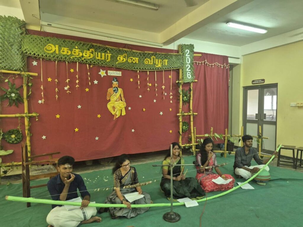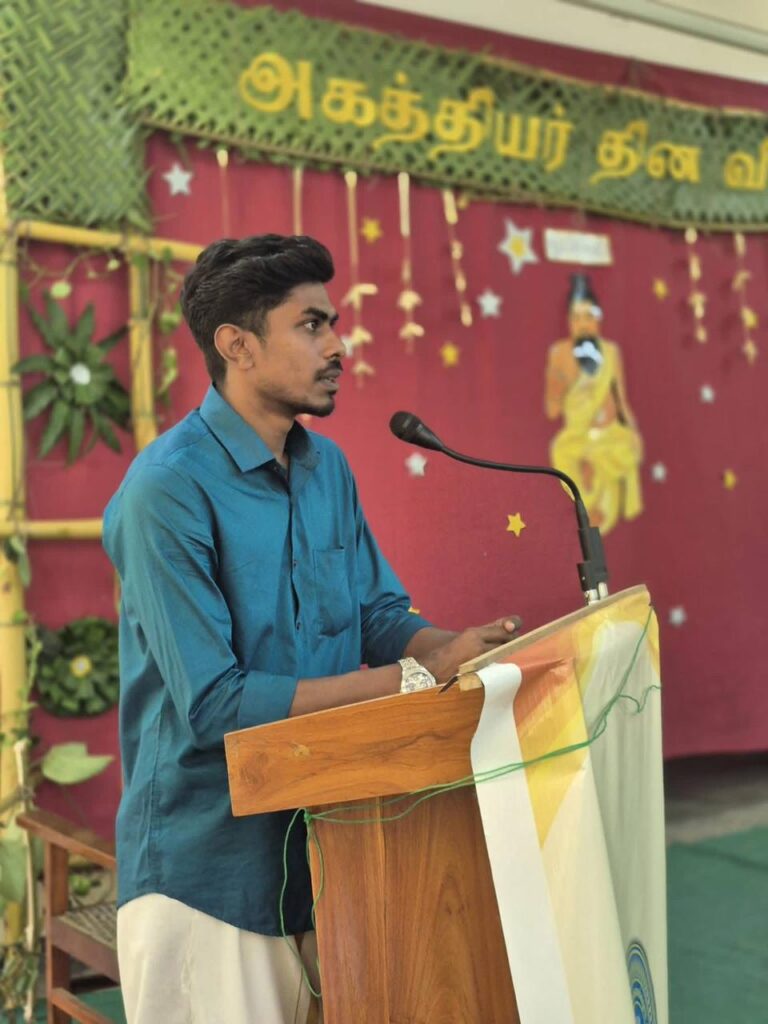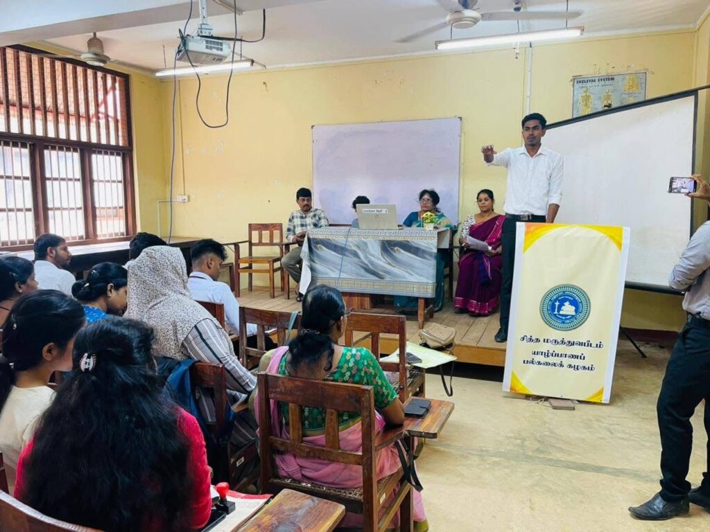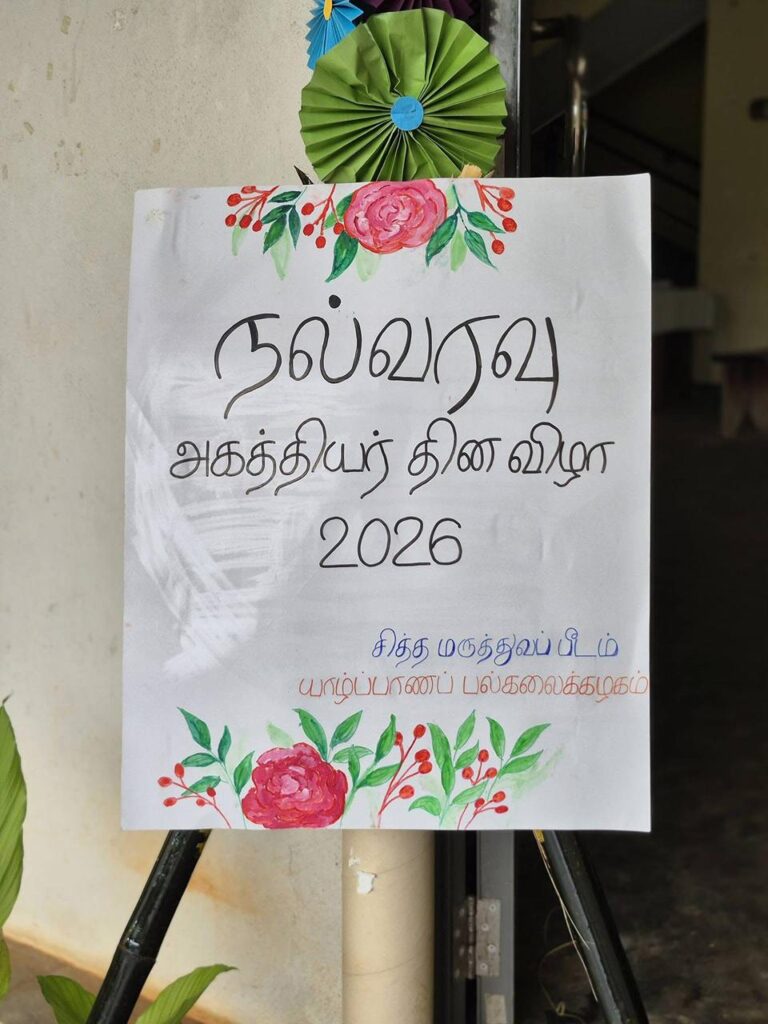 “Agasthiyar Day celebration was conducted by SMSU(Siddha Medical Students Union ), honoring the great Sage Agasthiyar and his invaluable contributions to Siddha medicine.” அகத்தியர் தின கொண்டாட்டம் சித்த மருத்துவ மானவர் ஒன்றியத்தால் நடத்தப்பட்டது, இது அகத்தியர் முனிவரையும் சித்த மருத்துவத்திற்கு அவர் ஆற்றிய விலைமதிப்பற்ற பங்களிப்புகளையும் கௌரவிக்கும் வகையில் நடத்தப்பட்டது.