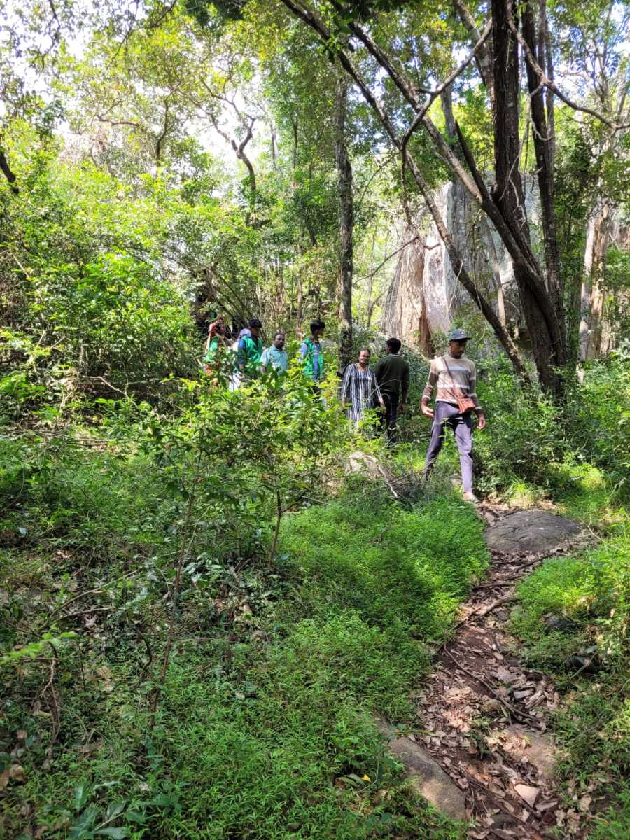 The field visit commenced at 11:00 AM and concluded at 4:00 PM. During the forest walk, we observed and documented nearly 120 species of medicinal herbal plants. We identified their botanical names and plant families, noted the parts of the plants used in medicine, and studied the ecological and medicinal significance of various species used in the Siddha healthcare system. We also noted botanical features (such as leaf shape, flowers, and bark), and their habitats.